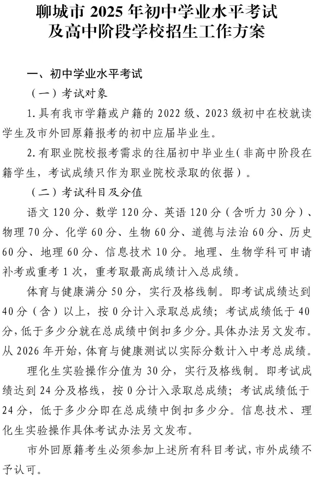 關(guān)于印發(fā)《聊城市2025年初中學業(yè)水平考試及高中階段學校招生工作方案》的通知