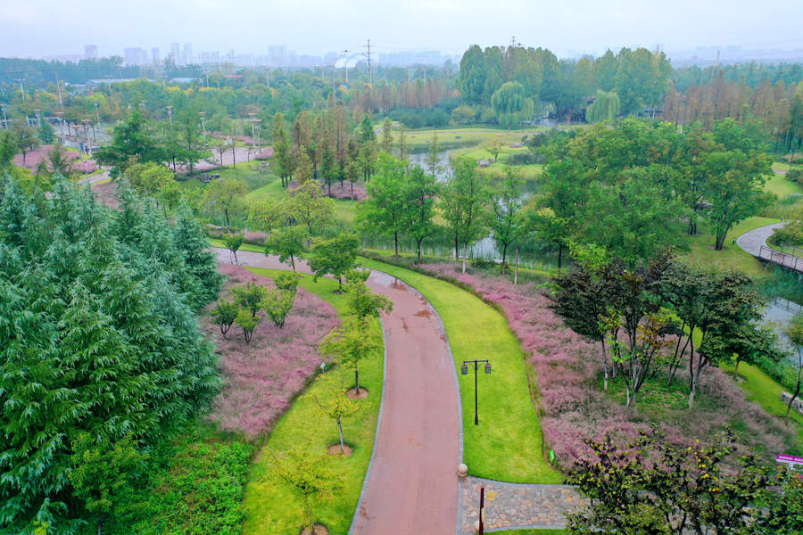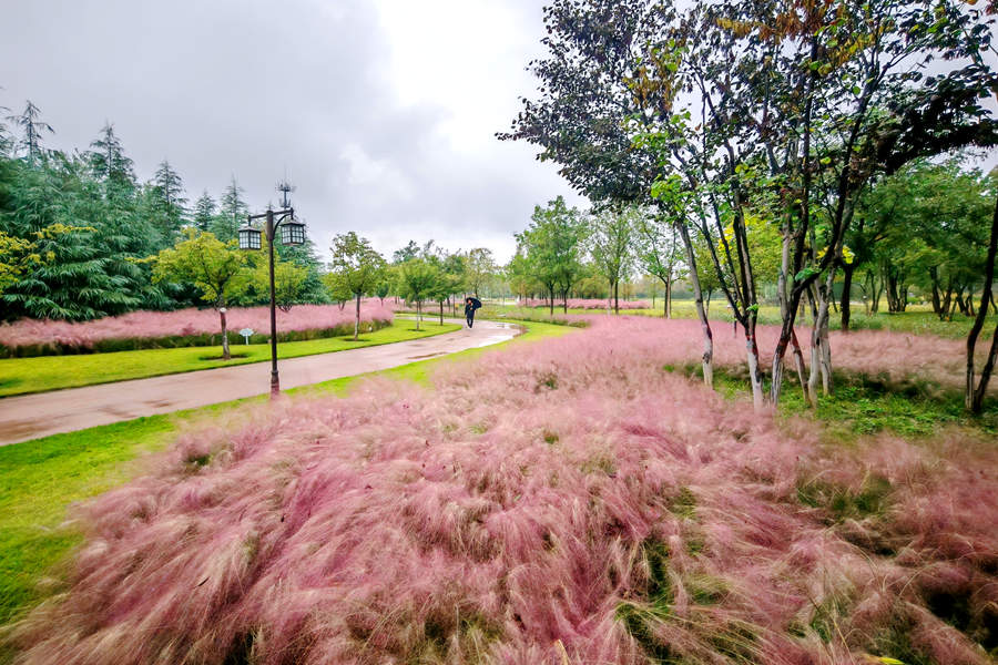 10月12日,秋雨中,鳳凰苑植物園內的粉黛亂子草迎來盛花期,頂生云霧狀的粉色花絮盡顯浪漫,直接把秋日氛圍感拉滿,園內被點綴得如詩如畫。