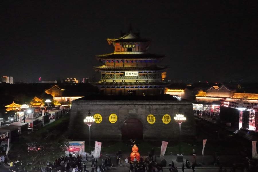 藝術節巧妙結合古城地標,設置了多處特色打卡點。古老的城墻、巍峨的光岳樓與千姿百態的葫蘆景觀相映成趣,成為游客們爭相合影的背景,古老的地標建筑因葫蘆藝術的裝點煥發出全新的魅力。