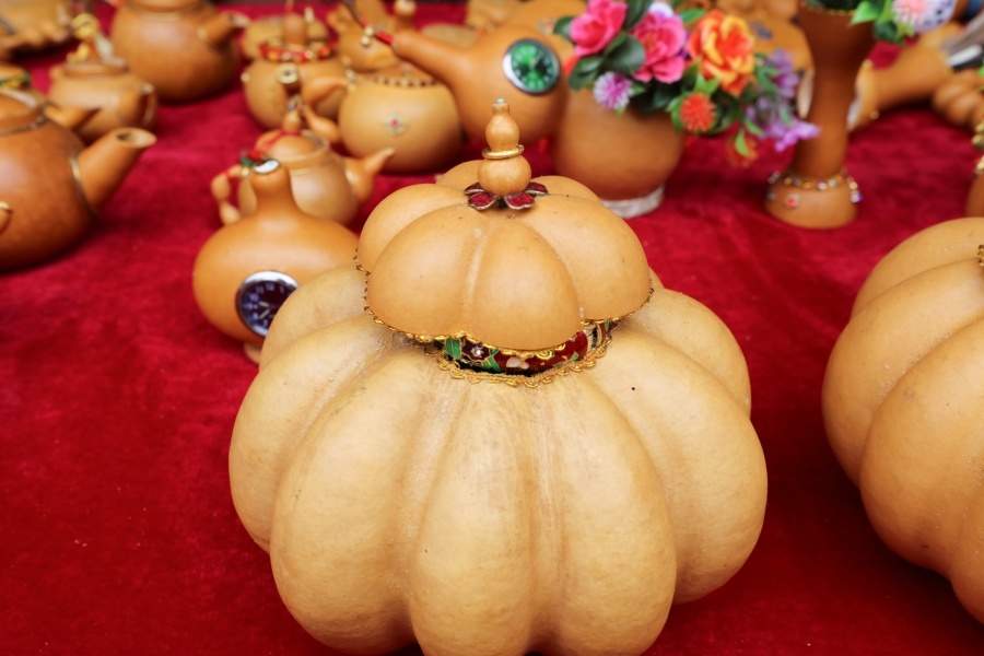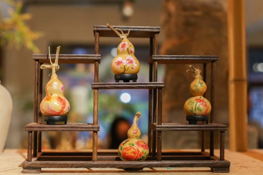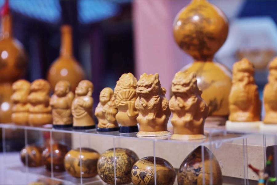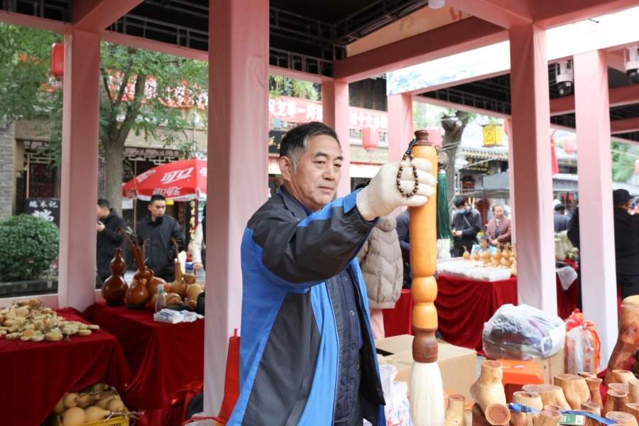形態各異、巧奪天工的葫蘆藝術品令人嘆為觀止。從烙畫葫蘆到造型別致的雕刻、彩繪作品,琳瑯滿目的展品充分展現了葫蘆文化的深厚底蘊與手工藝人的非凡匠心,吸引了大量觀眾駐足欣賞,細細品味。
