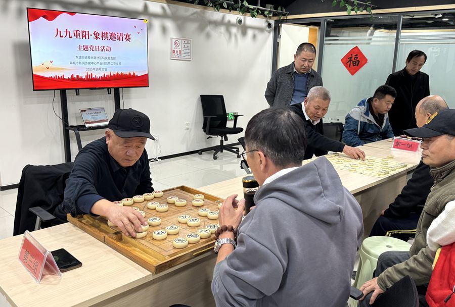 10月27日下午,開發區星光路社區舉辦“九九重陽象棋邀請賽”,豐富了社區老年人的節日生活?!?本報記者 韓翠翠