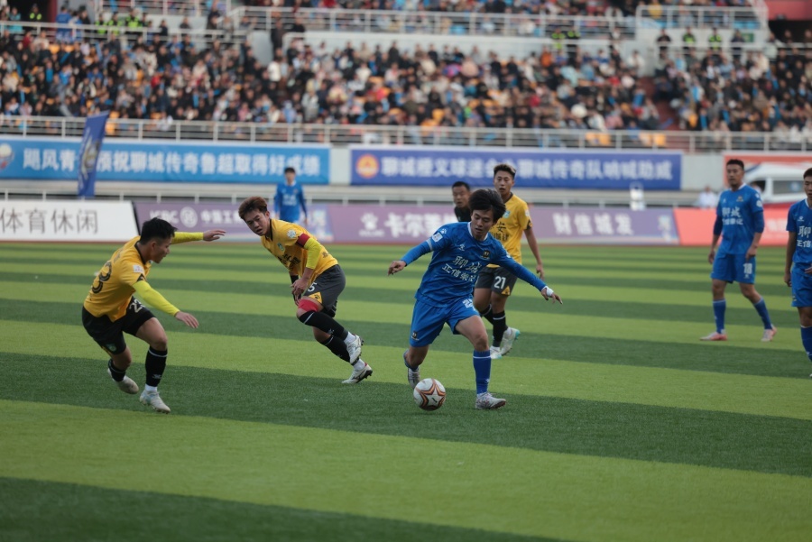 11月9日下午,2025年山東省齊魯足球超級聯賽決賽首回合比賽在聊城市體育公園足球場打響,聊城傳奇隊對陣泰安泰山城建隊。經過90分鐘激烈較量,雙方以0比0戰平。