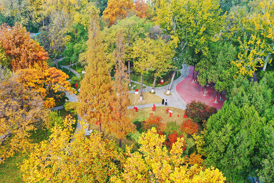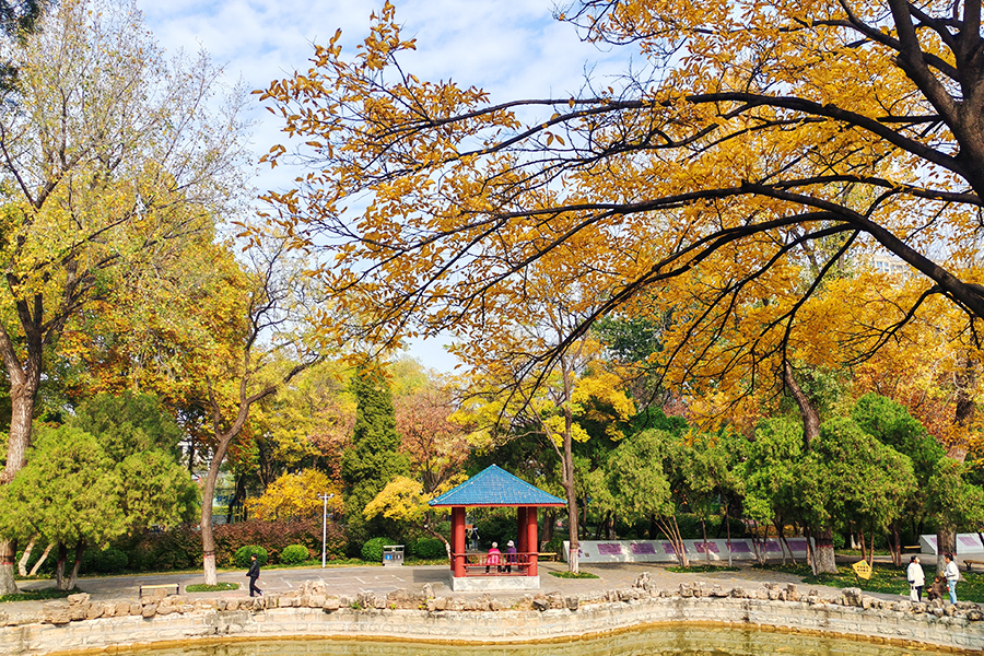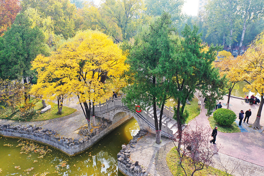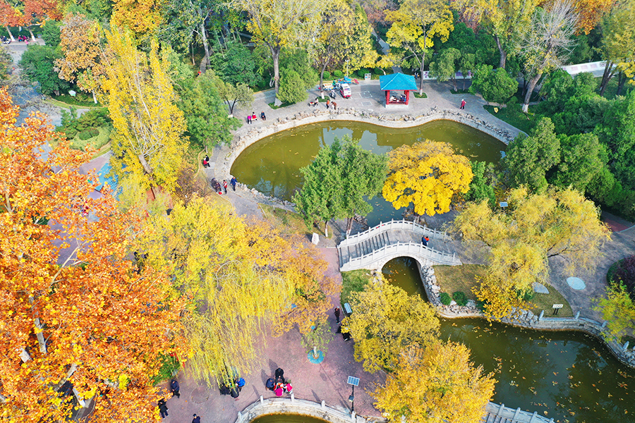 11月7日,正值秋冬之交,聊城公園內(nèi)疊翠流金,層林盡染,宛如一幅流動(dòng)的油畫(huà)。市民們?cè)诠珗@內(nèi)散步、游覽,享受大自然的愜意與美好。