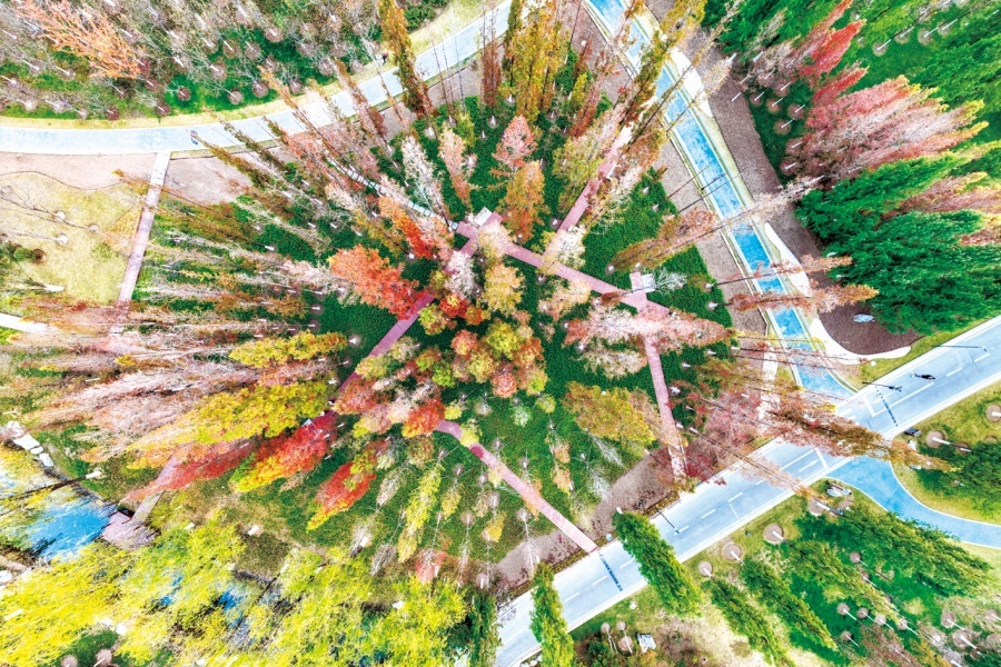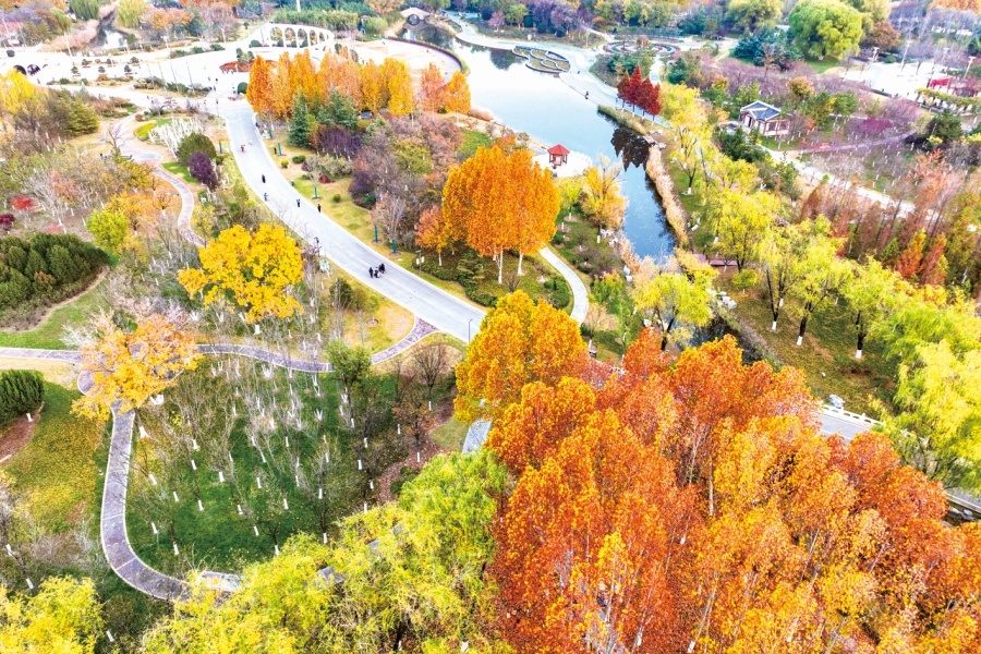 俯瞰五顏六色的聊城鳳凰苑植物園。 商景豪 攝