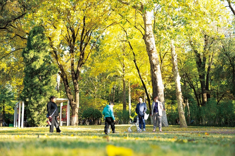 聊城公園的銀杏樹金黃滿枝。孫文輝 攝