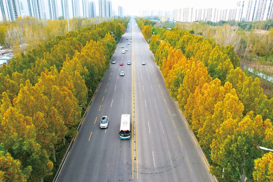 聊城北外環變身“黃金大道”。 孫文輝 攝