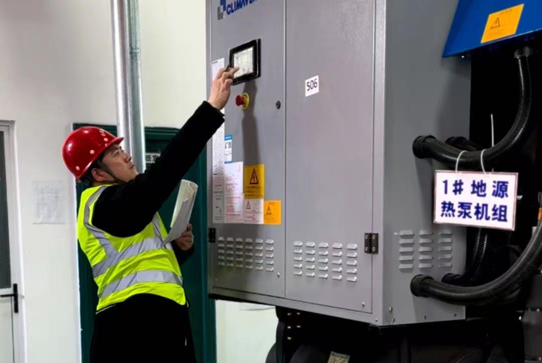 高鐵西站供熱工作人員正在檢查1#地源熱泵機組